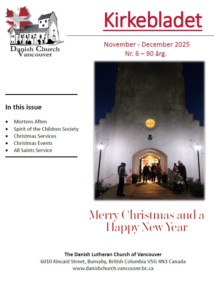 Kirkebladet is written mostly in English, with some Danish, and contains a variety of information including Church news, announcements and information about events happening within the Danish community and around the Greater Vancouver area.